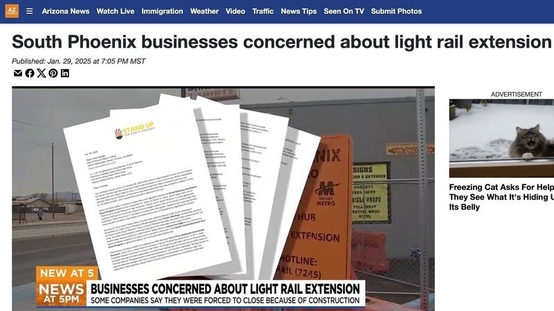 They join Channel 12, Channel 15, The Arizona Republic (twice) and Prensa Arizona in covering our grassroots coalition. We won't stop until every news outlet covers our movement, and Valley Metro is held accountable for the mismanagement of this project and the devastation it has caused our community.
