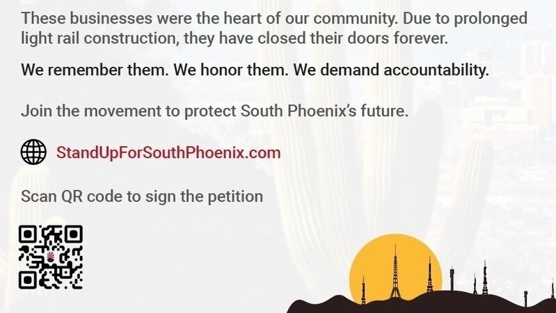 “South Phoenix is not disposable,” said Abarca. “We demand justice for the businesses lost, the families impacted, and the community that Valley Metro has ignored.”
