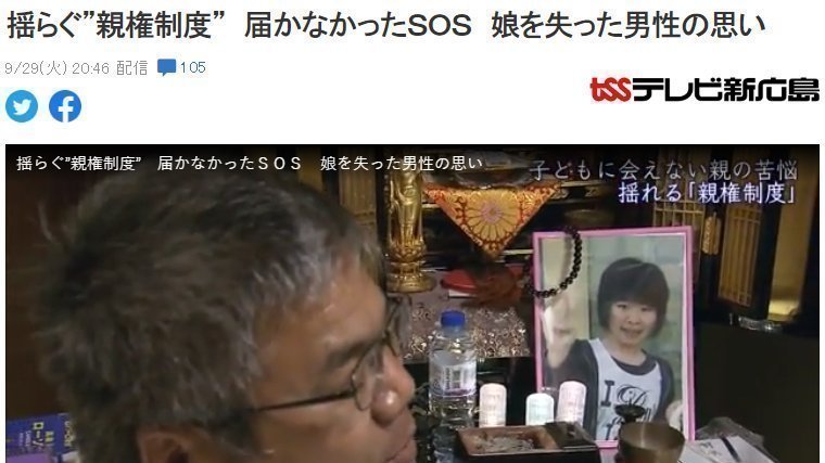 Feb. 29, 2020 TSS TV discuss the problem of the current custody system in Japan, introducing a father Emura Kouichi(46) who visit once a month the grave of his daughter Hiroyo who suicide at age 16, 6 years ago.