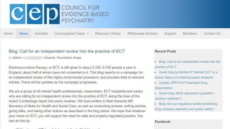 UK's Council for Evidence-Based Psychiatry joins multiple national organizations to highlight requesting a formal inquiry into safety and efficacy of ECT in their blog entitled: