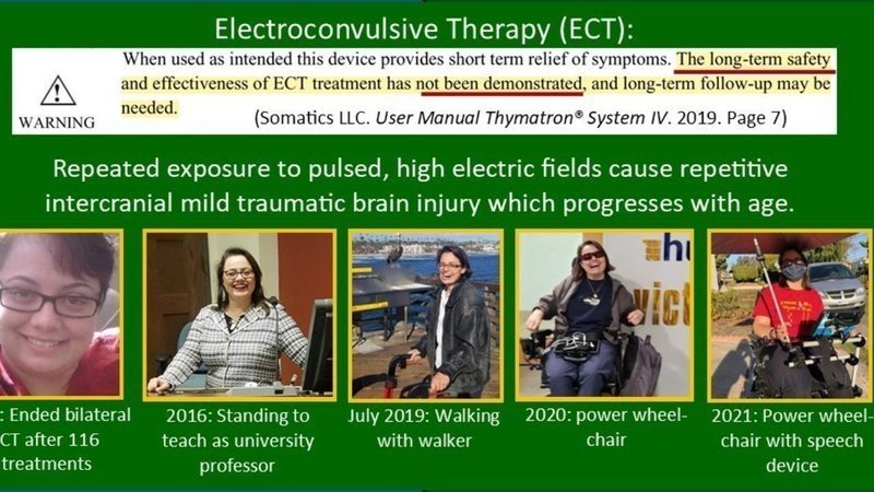 Doctors aren't required to understand how ECT impacts the body long-term which is why when ECT patients begin developing the baffling symptoms of "delayed electrical injury" causing motor neuron dysfunction, vascular dysfunction, and demyelination of the entire brain, spinal cord and nervous system, Doctors aren't prepared to help provide the long-term follow-up recommend by the FDA. Instead they will either tell patients they're imagining their symptoms or astute Drs will acknowledge electrical injury is outside their scope of practice and tell patients to go find an electrical injury specialist... problem is there are only about eight in the entire world! Good luck with that!