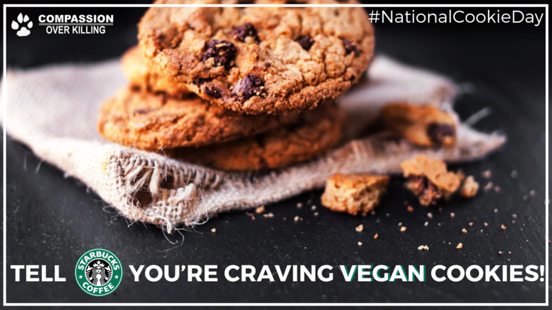 It’s National Cookie Day! Join us in telling Starbucks you’re craving vegan cookies with your dairy-free coffee: Click here to let the coffee giant know which flavor you want to see next!