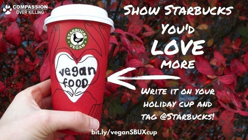 Neuigkeit zur PetitionStarbucks: Take the Next Step and Offer Vegan FoodACT NOW: Spread love for hearty vegan food using Starbucks’ new holiday cup!