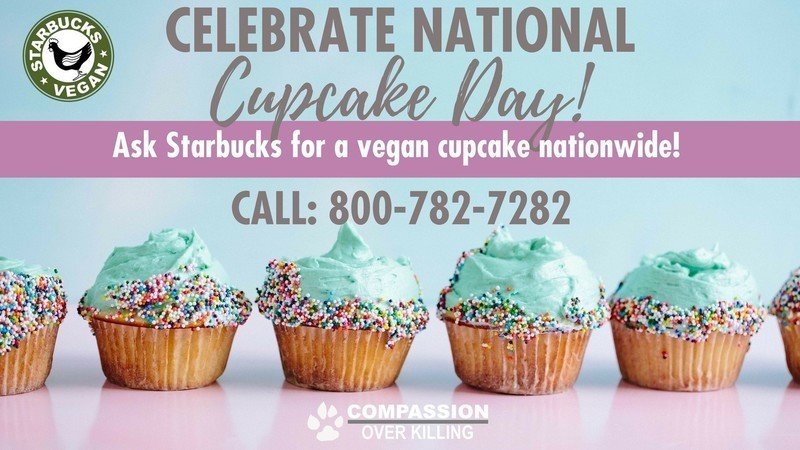 It’s National Cupcake Day, and what better way to satisfy your sweet tooth than with a vegan dessert at your local Starbucks? Help make this a reality by calling Starbucks TODAY at 800-782-7282 and asking for a vegan cupcake nationwide (use our sample script below)!