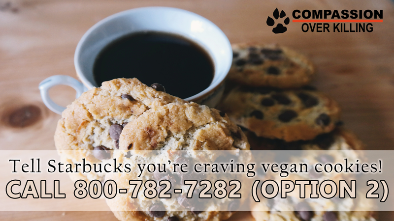 SAMPLE SCRIPT: “Happy National Cappuccino Day! What could be more buzzworthy on Starbucks’ menu than a vegan cookie? I was disappointed to learn from Compassion Over Killing that you are phasing out your macadamia oat cookie after just a few months--but now it’s time to brew up something even more exciting like chocolate chip, mocha, or peanut butter swirl! Please offer a vegan cookie and other food options for the millions choosing sustainable, kinder plant-based foods nationwide. Thank you!”