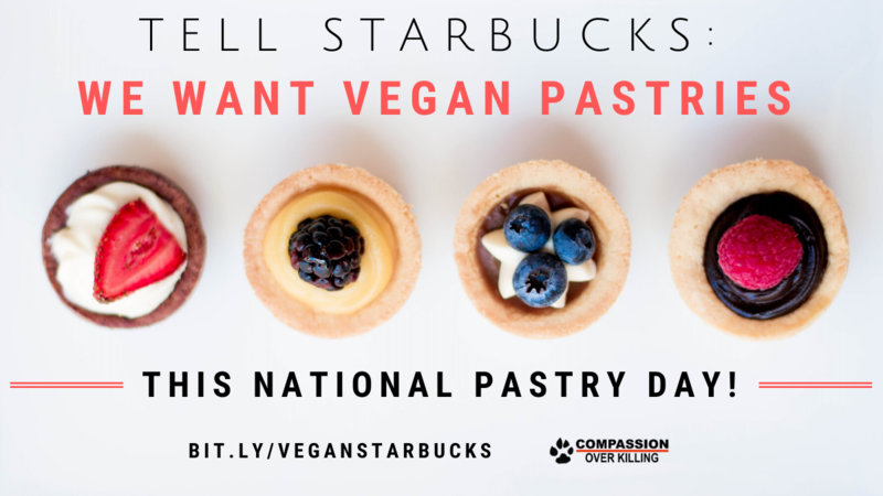 TODAY: Celebrate National Pastry Day with a quick action for cows and hens suffering on factory farms: Send Starbucks a quick chat urging it to dish out dairy- and egg-free treats nationwide!