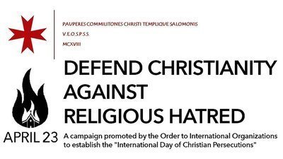 Per questi motivi, l’Ordine Pauperes Commilitones Christi Templique Salomonis – V.E.O.S.P.S.S. – MCXVIII ha decretato il 23 Aprile “Giornata Internazionale dei Cristiani Perseguitati nel Mondo”.