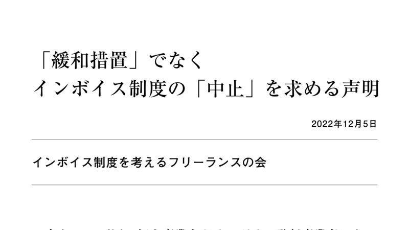 STOP!インボイスは昨日、Twitter上で、「緩和措置」でなくインボイス制度の「中止」を求める声明文を発表しました。