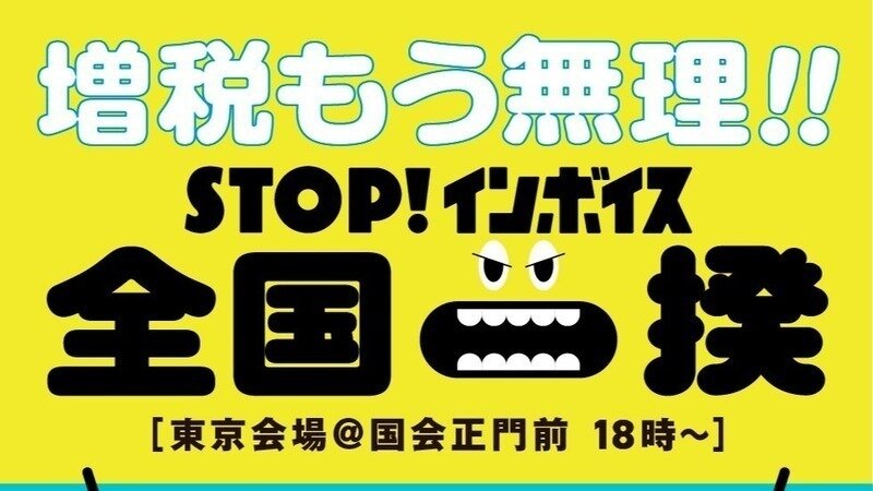 明後日6月14日(水)18時から、国会正門前で「増税もう無理‼STOP!インボイス全国一揆」を行います。