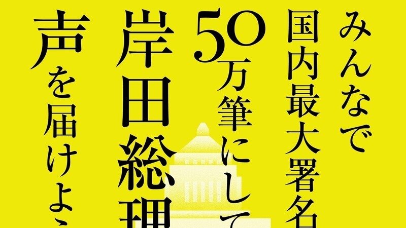 国内最大オンライン署名数「50万筆」にして岸田総理に声を届けよう!