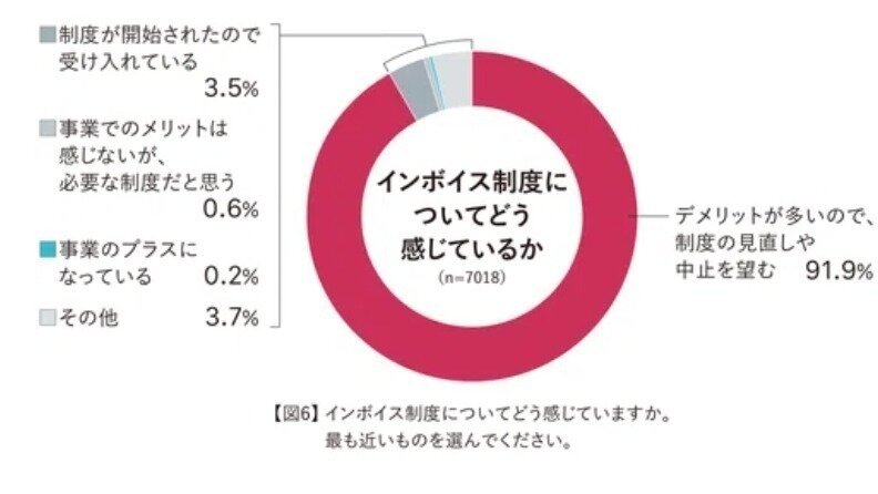 7000人中、91.9%の人がインボイスの「見直し・廃止を希望」。