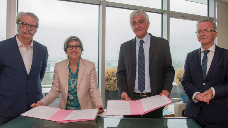 Légende de la photo: 5 septembre 2018 - signature du partenariat entre Hervé Morin, Président des Régions de france et Catherine Guillouard PDG du groupe RATP