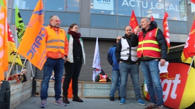 📢 Ce lundi 15 décembre 2025, devant les locaux de Caen la Mer, aux Rives de l’Orne, les cheminots normands ont fait entendre leur voix haut et fort ! 🎤🚂 À l’occasion de l’assemblée plénière du Conseil Régional de Normandie, qui délibérait sur le transfert de l’exploitation de l’étoile ferroviaire de Caen à la SNCF, David Cardin, secrétaire du syndicat CGT des cheminots de Caen, a porté un message clair et déterminé au nom des 4 organisations syndicales (CGT, SUD, CFDT, UNSA) : 📺 Voir la vidéo: