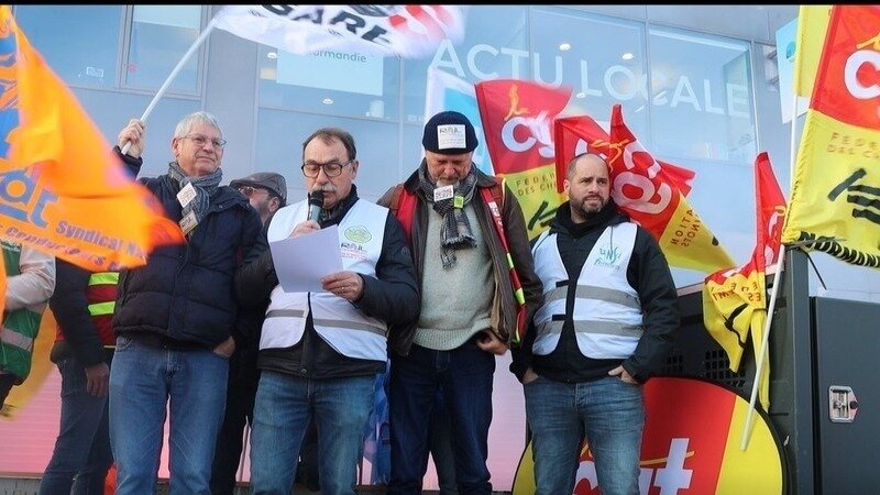 Avec le Collectif de Défense des Axes Sud Normandie et SOS Gares, il a dénoncé un choix politique inacceptable : la décision du Président de Région de confier l’exploitation de l’Étoile de Caen à RATP Dev, un pas de plus vers le démantèlement du service public ferroviaire.