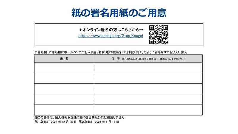 署名用紙をご用意しました