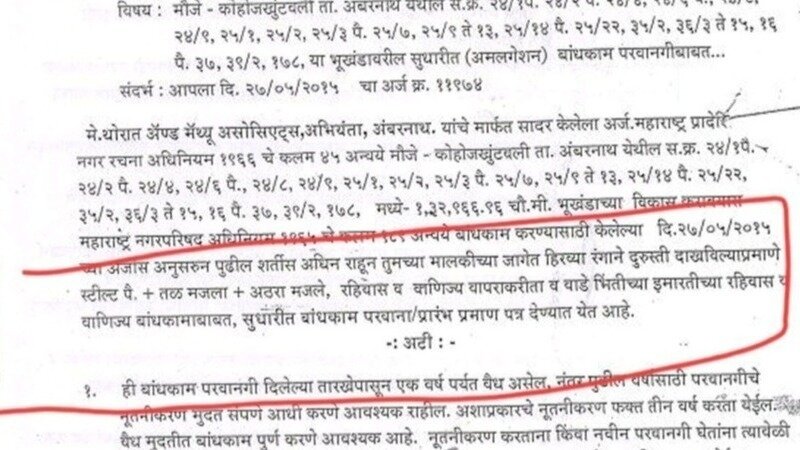 1. मोहन लाइफस्पेस एलएलपी, आर्किटेक्ट थोराट मैथ्यू और आर्किटेक्ट, टाउनप्लानर और मुख्य-अधिकारी द्वारा की गई करोड़ों की धोखाधड़ी की जांच के लिए एसआईटी नियुक्त की जानी है, धोखाधड़ी से महाराष्ट्र सरकार को भारी राजस्व हानि हुई है।