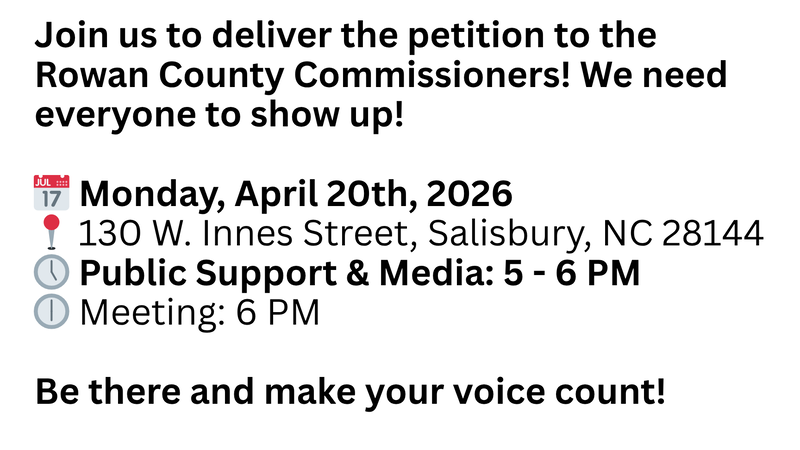 Petition updateStop AI Data Centers in Rowan/Salisbury NCThis is the BIG protest and meeting! Monday April 20th @ 5pm - bring everyone!