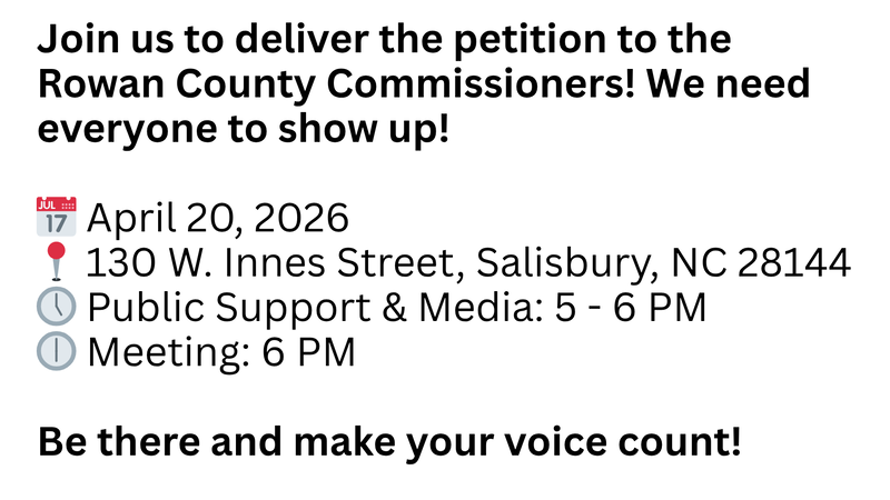 Actualización sobre la peticiónStop AI Data Centers in Rowan/Salisbury NCCOME HELP PROTEST tomorrow before the County Commissioners Moratorium Meeting!