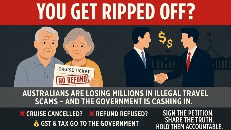 And here’s the part nobody is talking about: when cruise lines, airlines, and travel agents illegally refuse to issue refunds, the Australian Government still keeps the GST and tax revenue from those transactions. That’s tens - or hundreds - of millions of dollars flowing into government coffers from money that should have been returned to the public. It’s not just negligence anymore - it’s profiteering. By refusing to enforce the law, the government is directly benefitting from every refund that’s unlawfully withheld. This isn’t justice. It’s systemic failure - and consumers are footing the bill.