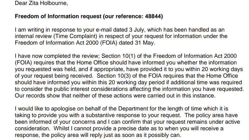The Information Commissioners Office have instructed the Home Office to respond to my first FOI request and I've raised a second complaint.