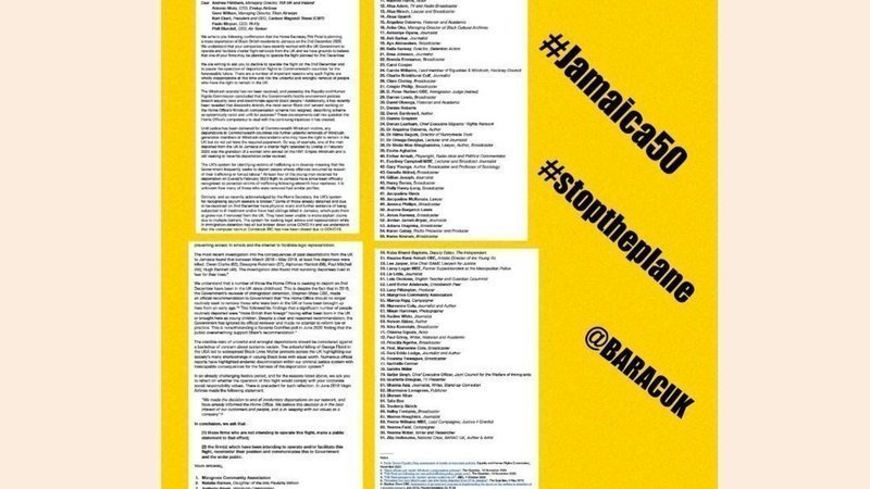 Today I and others in our team were proud to join award winning author, Bernardine Evaristo, model Naomi Campbell, historian David Olusoga and actors Naomie Harris and Thandie Newton, as well as lawyers, broadcasters and NGO chiefs, Windrush campaigners including Michael Braithwaite and Elwaldo Romeo - 90 black British based celebrities, public figures and campaigners in total - calling on airlines to stop the flight