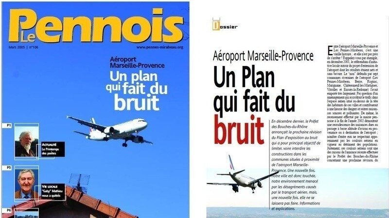 En 2005 le bruit des avions et son augmentation était déjà un sujet en termes de nuisances à maitriser. La mairie avait soutenu la mobilisation comme en témoigne le journal " le Pennois" N°106 de Mars 2005. Cette mobilisation et ce soutien avaient payé!