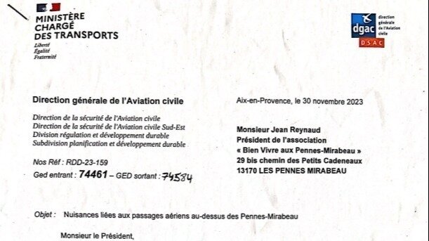 Notre manifeste contre le bruit des avions aux Pennes-Mirabeau a été largement diffusé. La direction de l'aviation civile vient de nous répondre. Des études sont lancées en 2024: