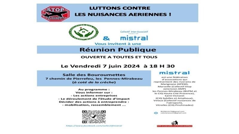 Petition updateStop au bruit des avions sur les Pennes-Mirabeau !Réunion publique ouverte à tous le 7 juin 2024 à 18h30 salle des Bouroumettes