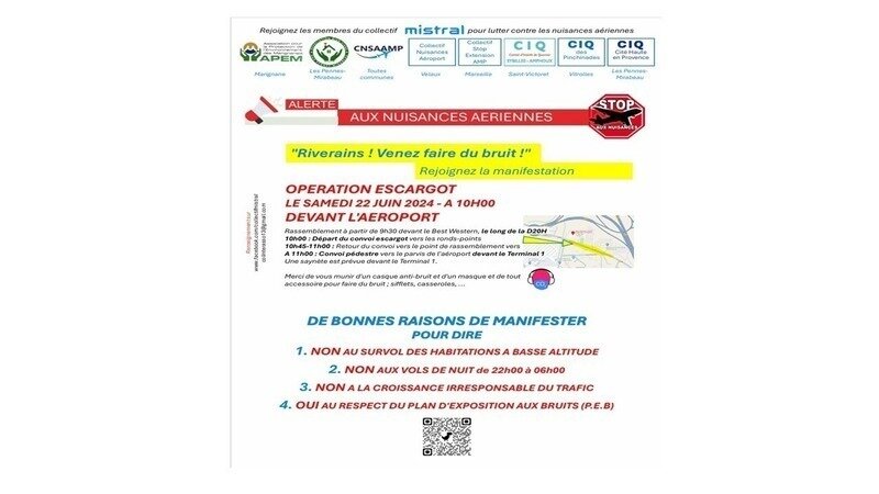 Une opération Escargot sur l'aéroport ce samedi 22 juin à partir de 10h00 : RDV à 9h30 devant le Best Western le long de la D20H.