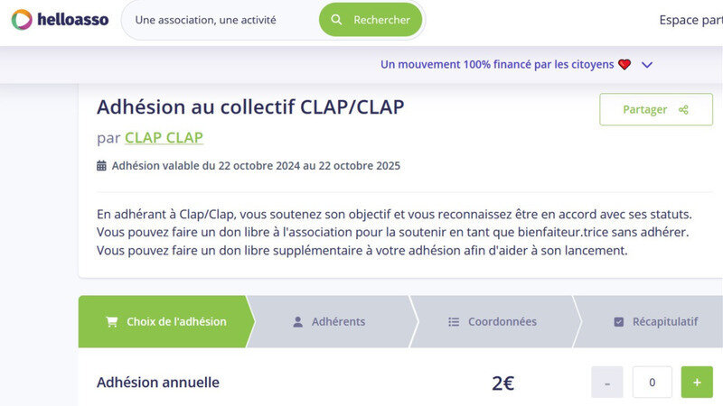 - Adhérez à notre collectif citoyen et apartisan pour seulement 2 euros: Clap/clap: Adhésion annuelle à Clap/Clap