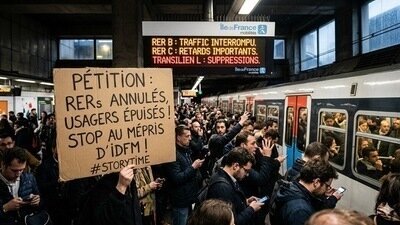 Les transports en commun d'Île-de-France, gérés par Île-de-France Mobilités (IDFM), sont devenus un cauchemar quotidien pour des milliers d'usagers. Les retards incessants, les pannes récurrentes, et la surpopulation dans les trains et métros ont des conséquences graves sur la santé mentale et physique des passagers. Et cela n’est qu’une partie du problème : ces perturbations impactent également la vie professionnelle, sociale, et familiale des habitants.