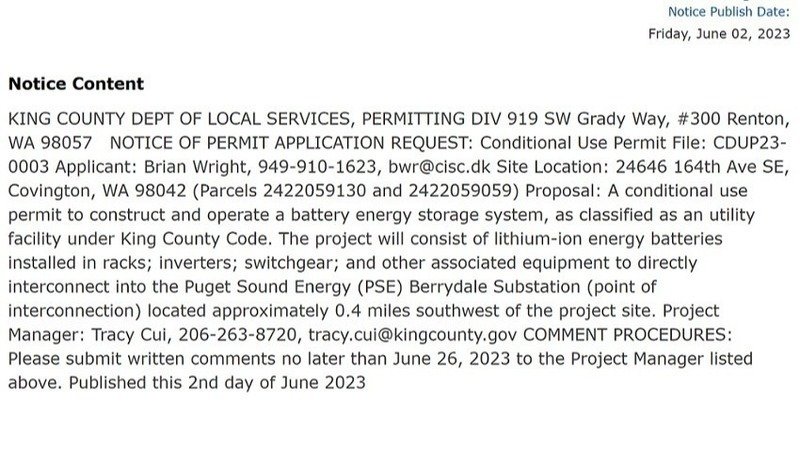 I was just forwarded this newspaper clipping- saying the comment period is open until June 24th: I haven't seen anything online or anywhere else- no Proposed Land Use sign posted yet, no notice in the mail... Please email your concerns and opposition and tell all your friends and neighbors to email the Project Manager: Tracy Cui at Tracy.Cui@kingcounty.gov