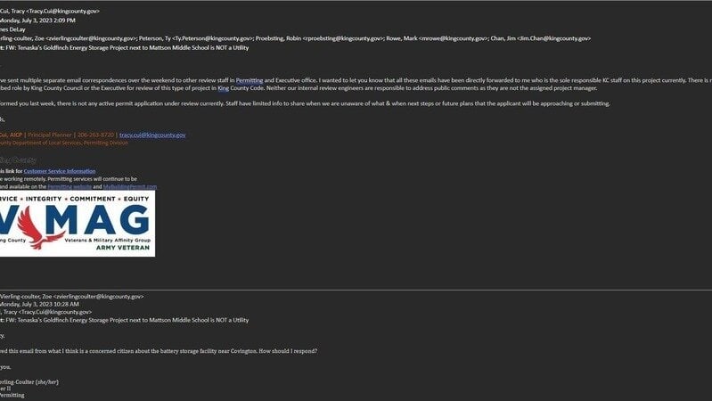 Got an email from Tracy telling me that she is the sole person responsible for this project and that King County Executives and King County Council don't have any role in the review process of this type of project- basically telling me to stop emailing the King County executives, King County Council, and other King County permitting staff...