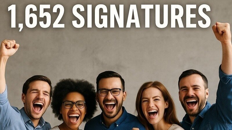 Most petitions on Change.org take several days — sometimes weeks — to reach 1,000 signatures. Reaching 1,652 within 48 hours places this petition among the top 1% of fastest-growing petitions on the platform at this stage.