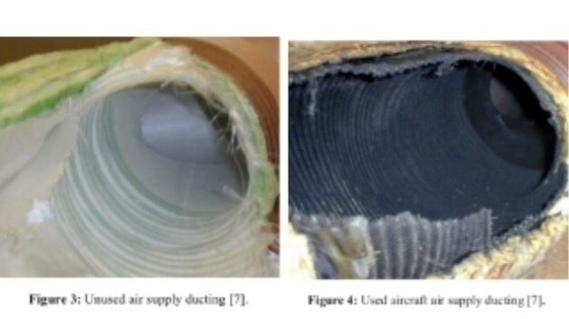 Photo: Unused aircraft air conditioning duct (left). Used aircraft air conditioning duct (right).