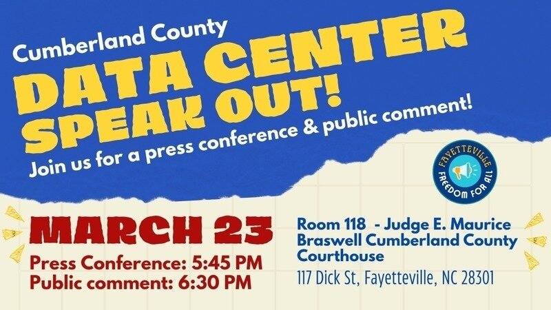 Join Fayetteville Freedom for All (FFA) in speaking out against these predatory data centers! To get involved, join two upcoming events and check out the toolkit.