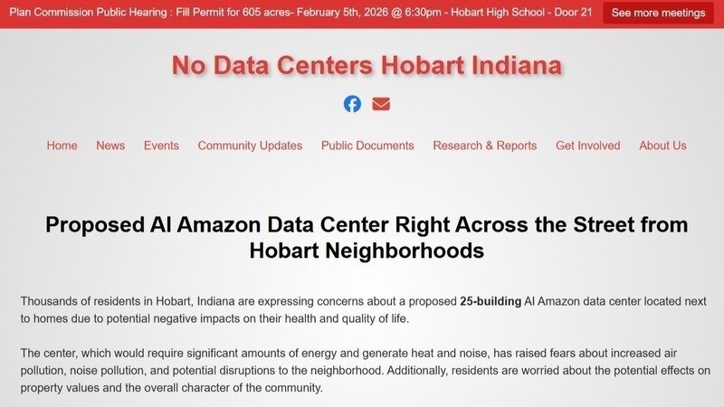 No Data Centers Hobart Indiana has created a website - hobartdatacenters.org