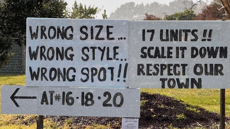Let’s be clear — the signs on Eruini Street aren’t nasty or abusive. They simply share valid concerns about a project that doesn’t fit with the character, infrastructure, or coastal environment of Waikanae Beach.