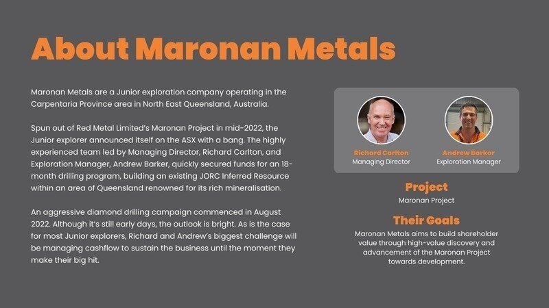 Market manipulation is rife on the ASX and many friends I have reached out to about Maronan say they dont touch ASX stocks anymore. I totally get that. But Maronan is unique. Its 53% owned by Red Metal, 10% owned by Crescat Capital and Joshua Pitt has 4%. Other shareholders have a maximum 1% stake. Its a tightly held company and yes there are some shenadigans with the share price but there is no short selling and its quite easy to stop the share price manipulation.