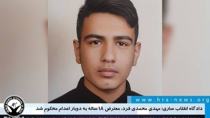Today DW reported that Mehdi Mohammadi Fard one of the protesters in Iran was sentenced to death twice. Mehdi is 18 years old and comes from Noshahr, a city in the north of Iran.