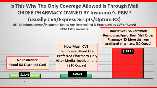 Throughout the week, I decided to log into our CVS Caremark portal to see the difference in reimbursements from our preferred pharmacy and the mail order pharmacy. What I discovered was alarming.