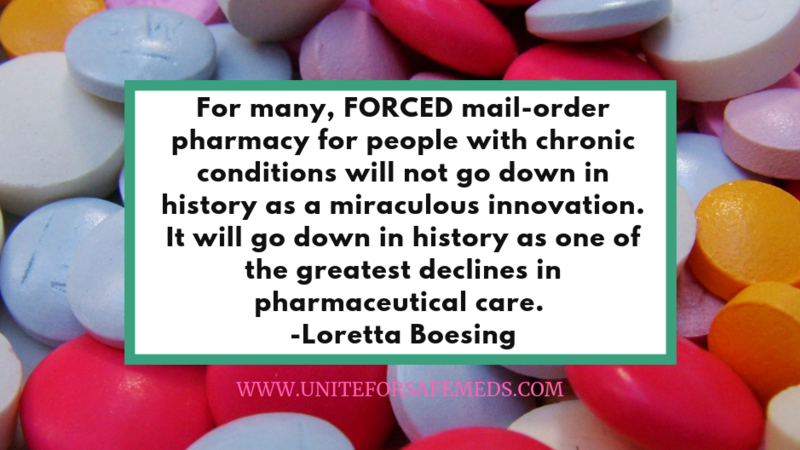 If someone likes mail-order, they should be able to use it, but no one should be forced into taking the many risks associated with mail-order pharmacy. I'm going to share with you just a few of the over hundreds of comments from just this week towards mail-order pharmacy.