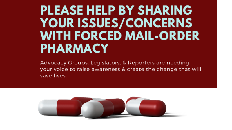 5 minutes of your time could help save lives. We have reporters, legislators, and advocacy groups who need your story to raise awareness and to begin to implement laws to change the life-threatening issues with forced mail-order pharmacy. Many issues arise when there is no face-to-face communication, life-threatening delays, miscommunication, and lack of proper temperature monitoring.