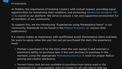 Some of the main changes Roblox has announced are: