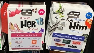 Today I walked into a well known supermarket for some grocery shopping and came across the gift cards section of the store and to my surprise there were two of these gendered gift cards that were targeted for ‘him’ and ‘her’ and that’s not even where the problem starts. The ‘him’ gift card consists of brands like BCF, Supercheap Auto, Drummond Golf and Barbeques Galore with its packaging showcasing golf clubs, a football and some other tool work . CONTRASTING to the ‘her’ gift card consisting brands like David Jones, Seed, Swarovski, Bras n Things, T2 and Lorna Jane with the packaging showcasing a pink bra, a teapot, heels, diamonds and a pink lipstick.