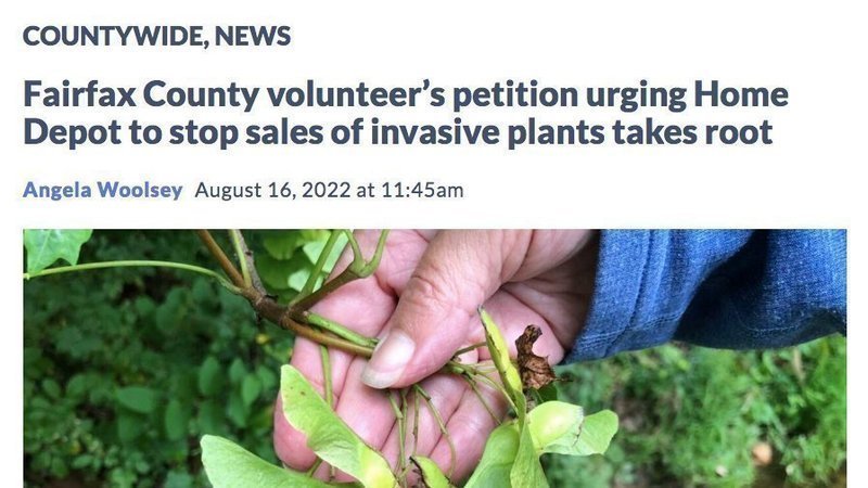 After spotting wintercreeper, Japanese barberry, and other invasive plants at the Home Depots in Hybla Valley and Merrifield, Taylor launched a Change.org petition earlier this summer urging the company to end sales of all species listed as invasive in the U.S.