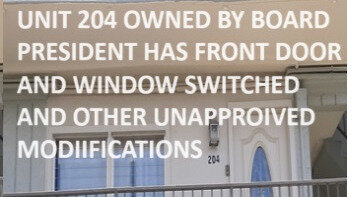Unit 204 was modified similarly to mine in 2004 but was never persecuted although they kept modifying it repeatedly and without approval. The last time in 2022. The front door and window are still switched. They left gaping holes in concrete in the back, and so on.