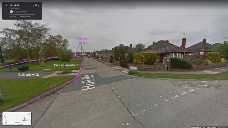 There are large, private open gardens off a section of Hull Road in York (photo above) that the council plans on adopting using s.228 (1). Back in 2005, the council created a cycle path on a section of this private garden area. They did it without consent from the landowner, without even establishing a public right of way, and with no legal powers whatsoever. They created another on this private land the following year (according to Google maps), again following no statutory process. Because the Council has been in trouble with the LGO in 2019 for keeping poor records, they LGO has given them until the end of the year to fix their records, which means they have to correct their prolific errors. Instead of doing it the right way, the council is misusing s.228 to cover up highway development mistakes. If anyone is interested in this, they can watch the Executive Decision Meeting by clicking here. The landowners cannot afford to allow this to happen, and hopefully they will oppose the decision. If they don’t, the council will continue to abuse this power and keep sweeping up private land they unlawfully carry out works on. The council claim they had external legal advice, without stating what that advice was, so I’m sure they are misleading everyone, yet again. According to the Highways Act and the more recent case Barlow v. Wigan Council where the judge concluded “that if a highway authority built a highway, it counts as a ‘highway maintainable at public expense’ regardless of when or why it was built or designated a highway.” Therefore, by legal default, the council cannot build a private street necessary to trigger s.228 (1). The Local Highways Authority knows this, but they also know the council can do unlawful things until a judge intervenes, which isn’t likely. These landowners have a solution, and I have been helping them with a string of others.