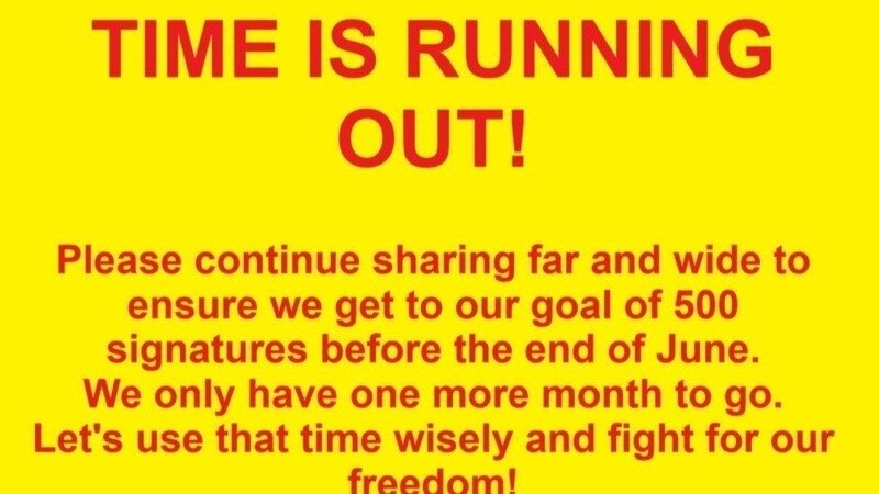 We have until June 30th to continue sharing this petition far and wide and chipping in as much money as we can - even if it's just one dollar - to gather those final 135 signatures to get to our next goal of 500 before the deadline approaches.