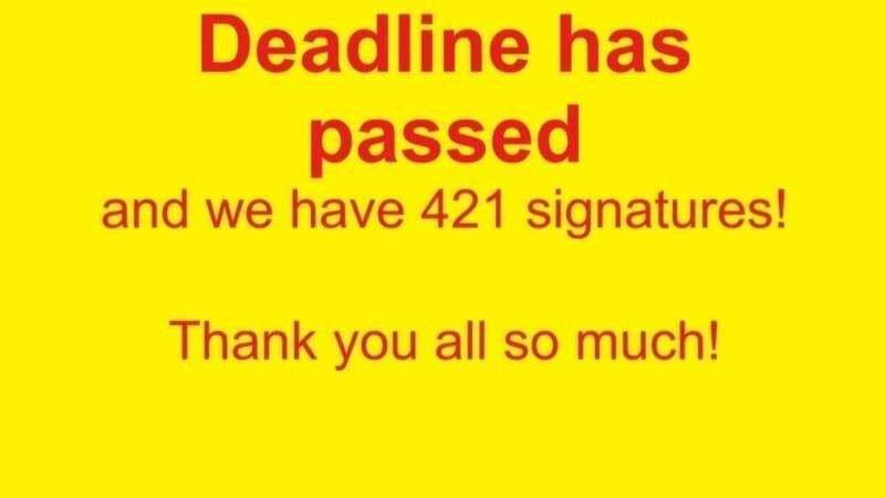 The deadline has passed, and our petition has grown to 421 signatures!